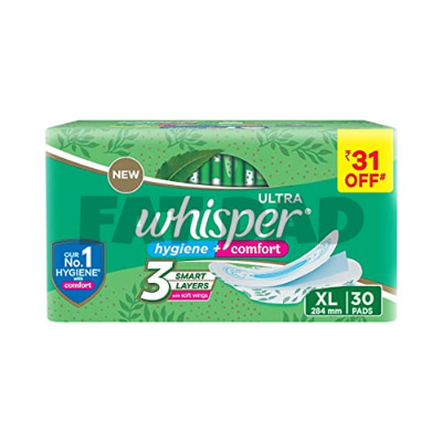 Whisper Ultra Hygiene + Comfort 3 Layers Xl-30 Pads